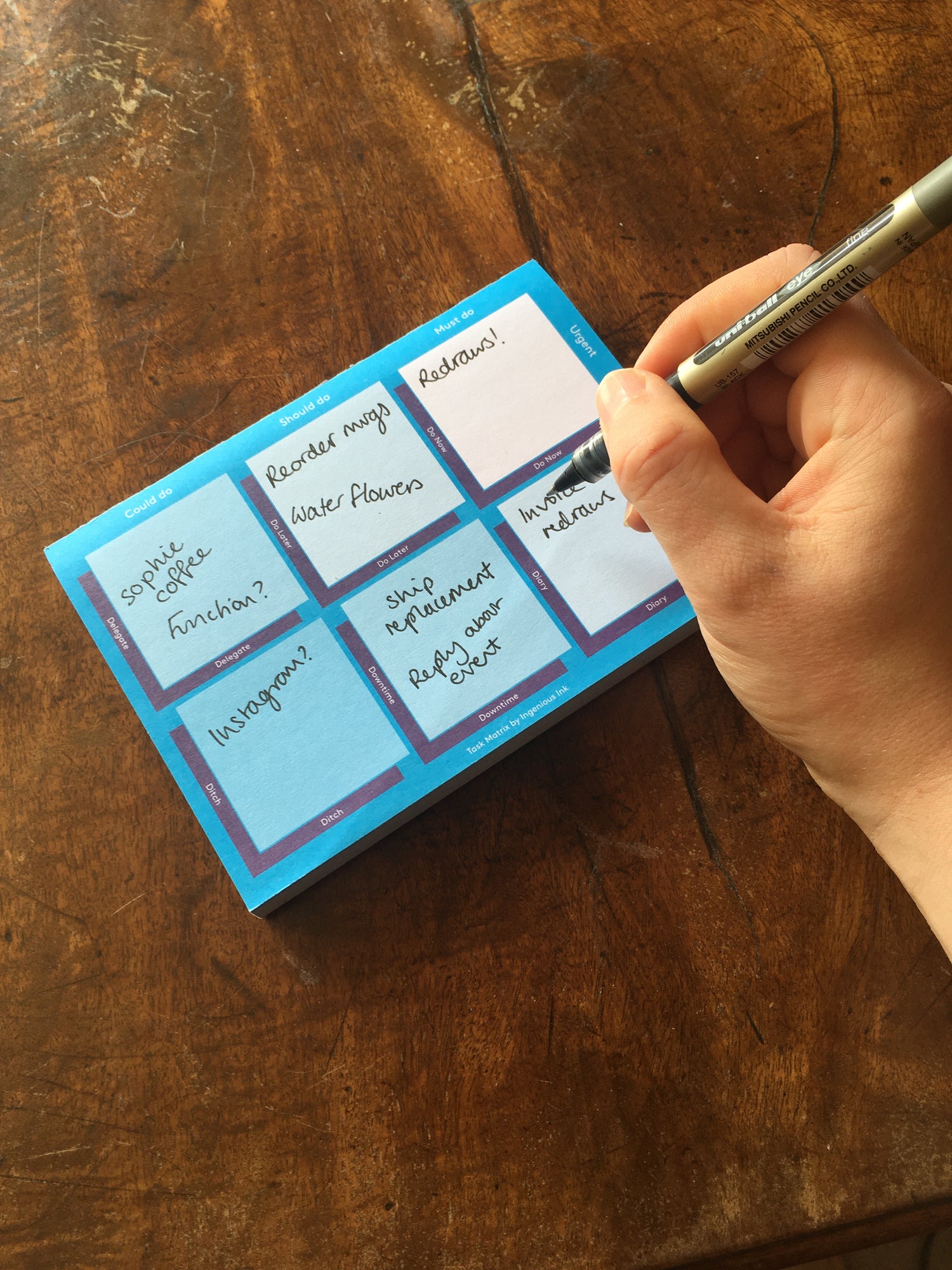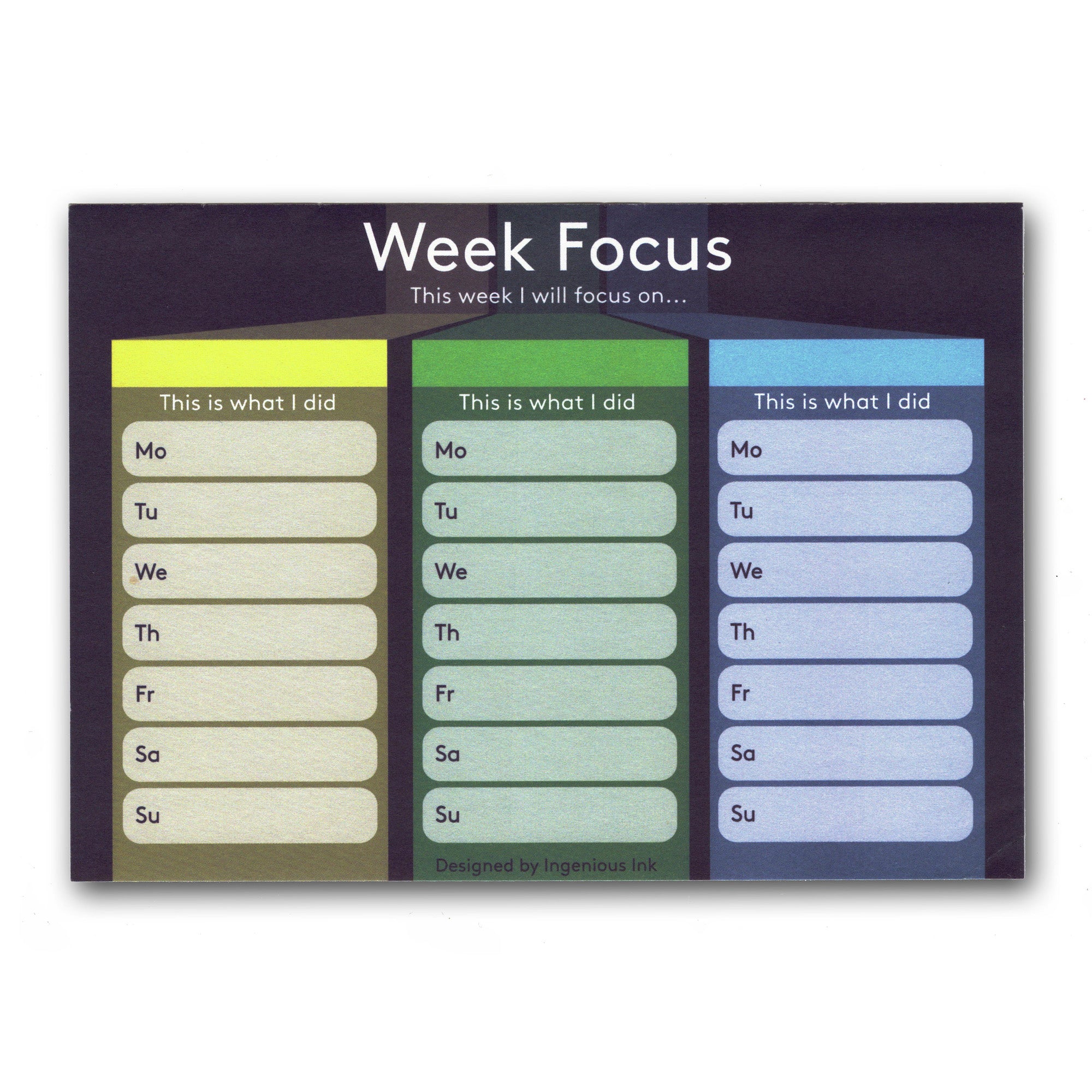 Ingenious Ink creates distraction-free notepads with purpose. These help guide you through decision-making challenges. They're like you're favourite productivity app, just without the distracting notifications.