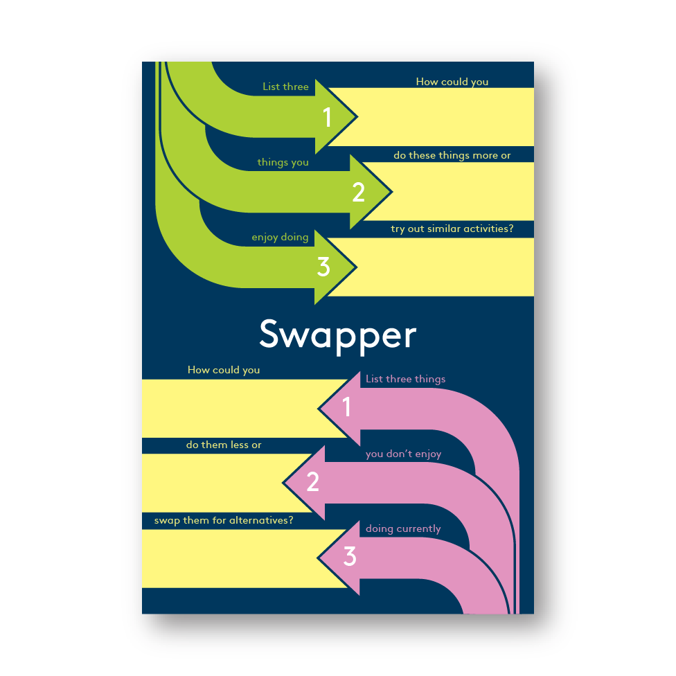 Identify three things you like doing and work out how to do them more. Then identify three things you don’t like doing and work out how to do them less. Sometimes small changes make big differences.We've redesigned this one into a notepad rather than a set of cards.