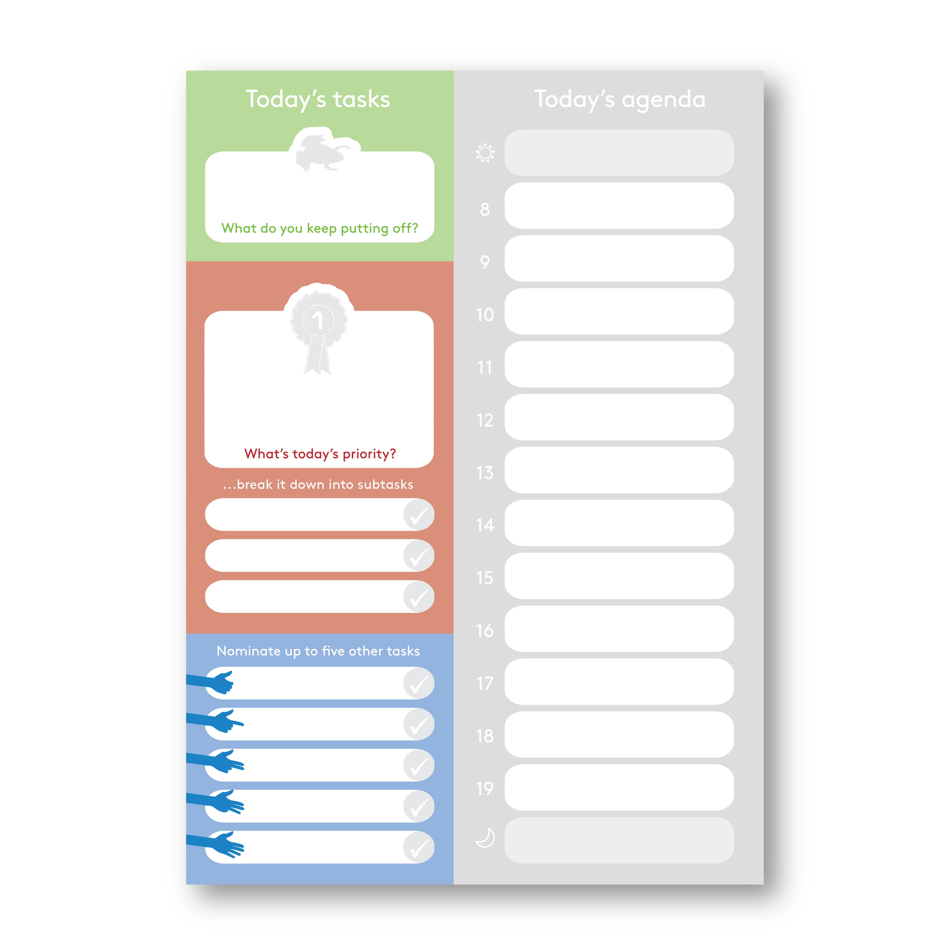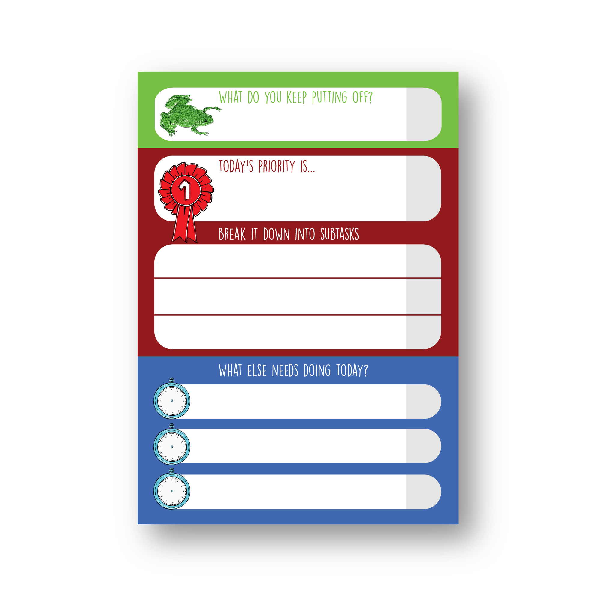 Keep breaking down goals until they're arranged into manageable subtasks using this dinky little notepad.