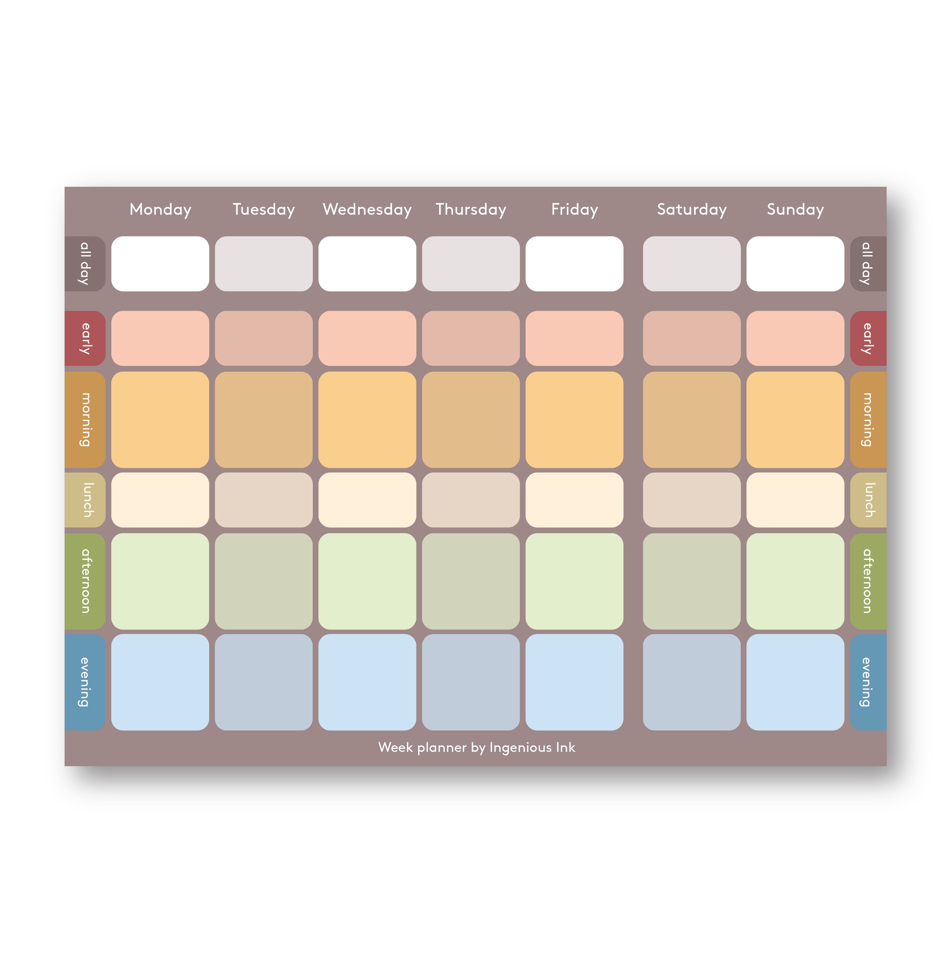 This notepad organises your days into named parts of the day, morning, early, late, afternoon .etc.
