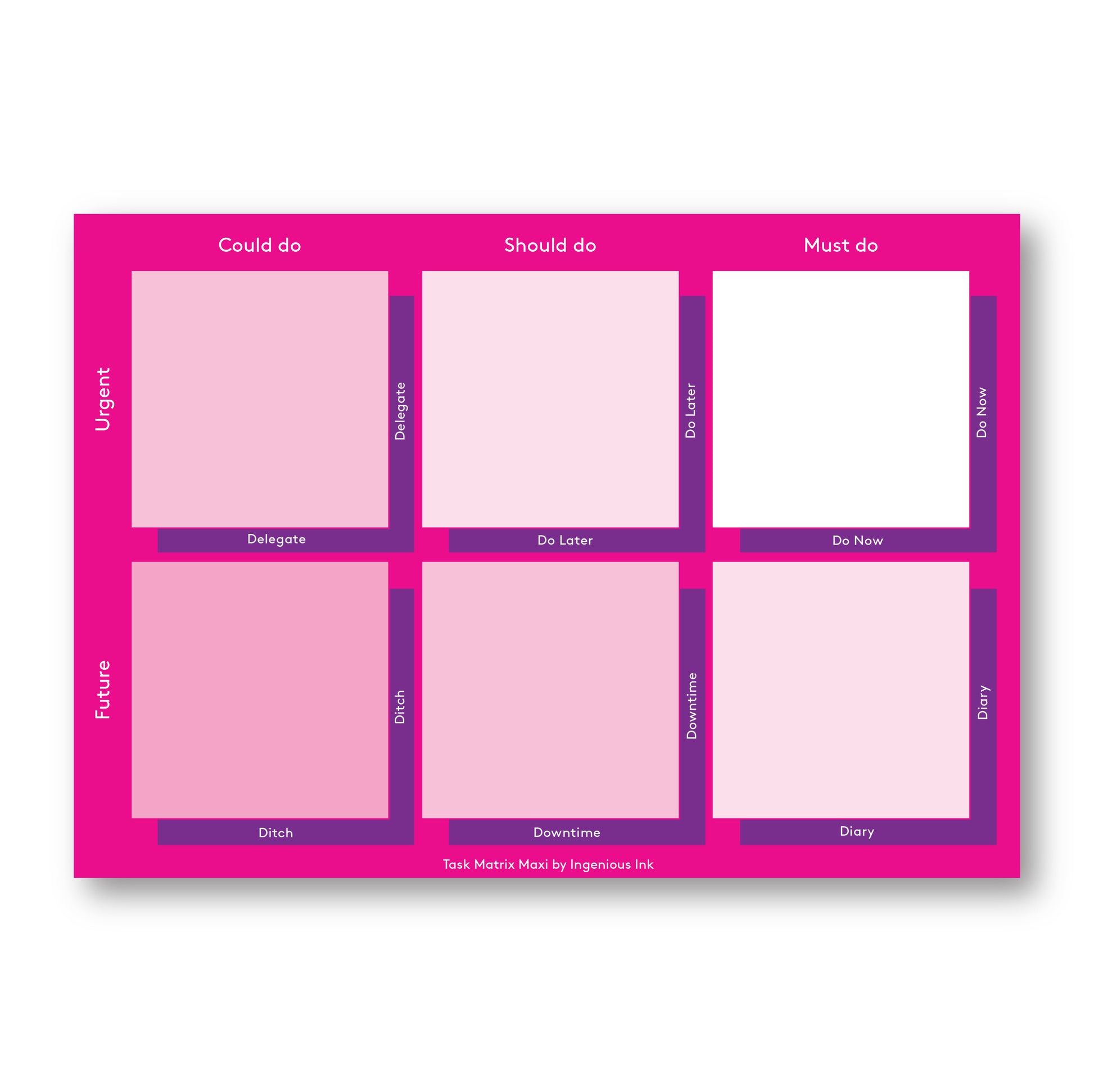 Plot all your to do tasks on our Task matrix based on urgency and importance, then follow the instructions based on which box they ended up in.