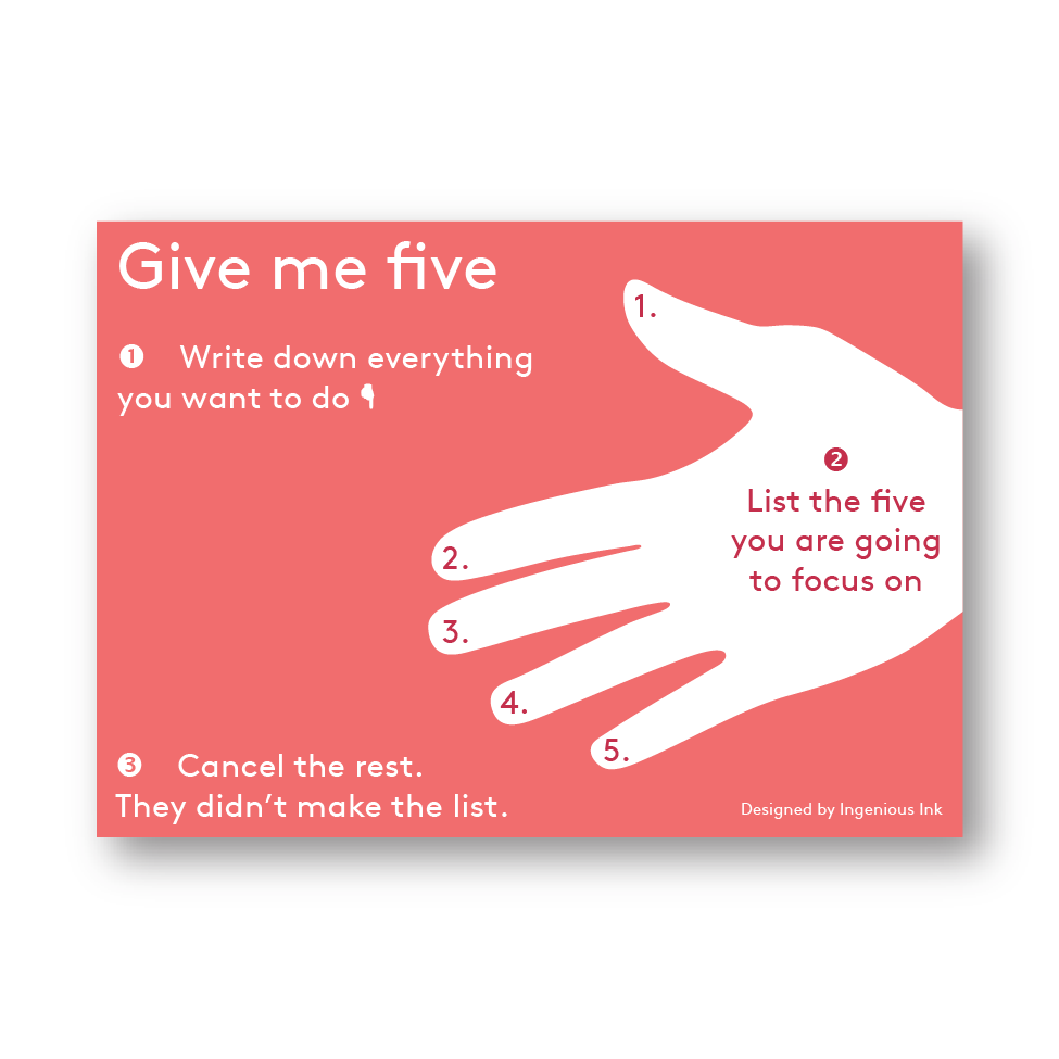 Write down all the things you have to do, then pick the five you are ACTUALLY going to do.