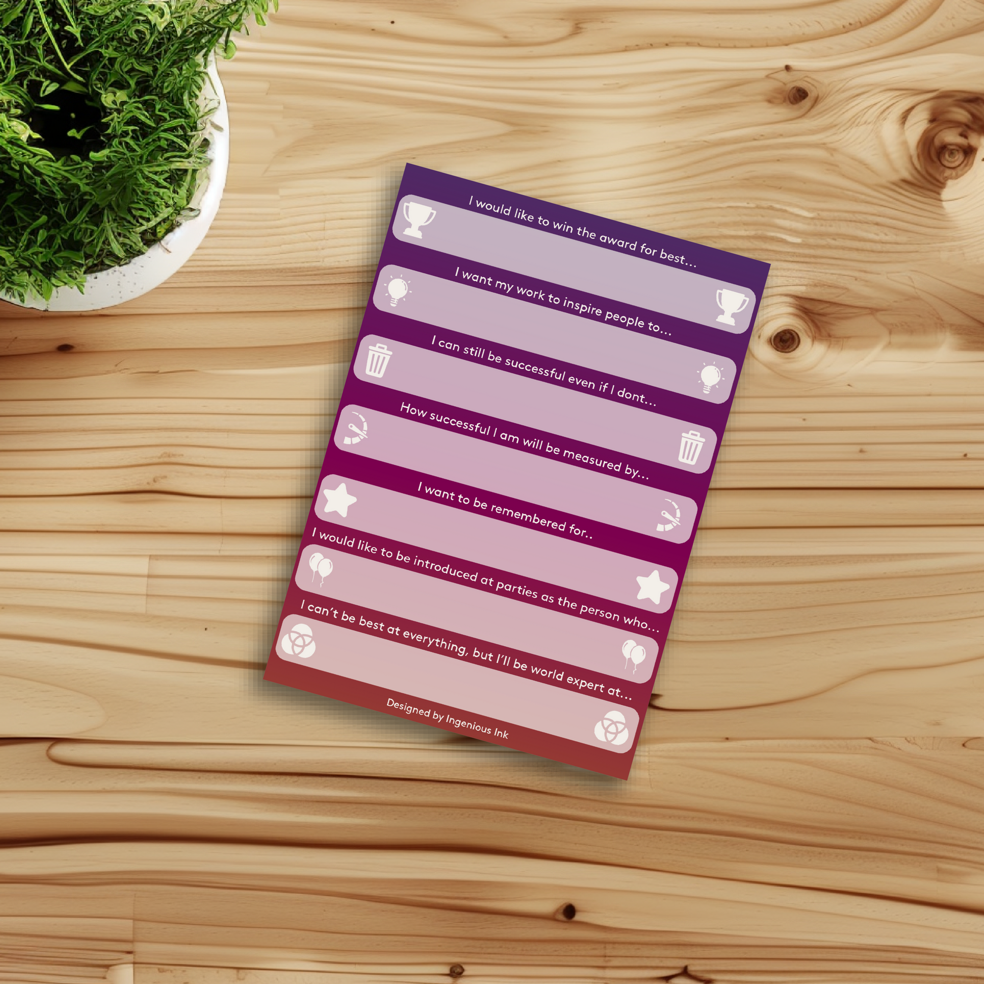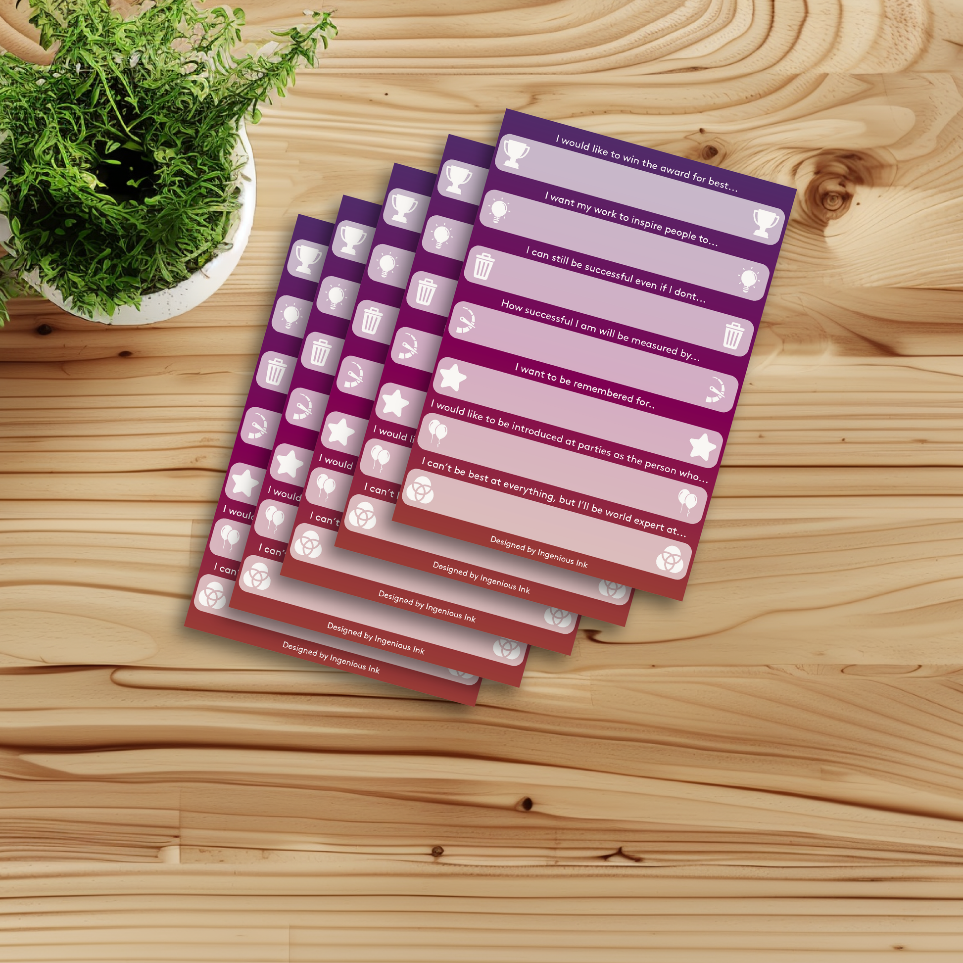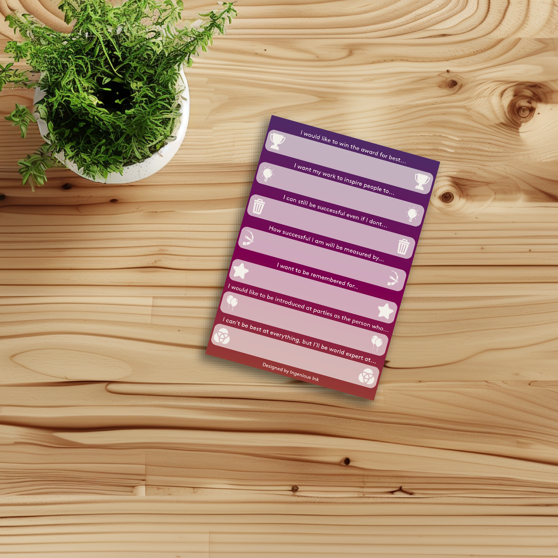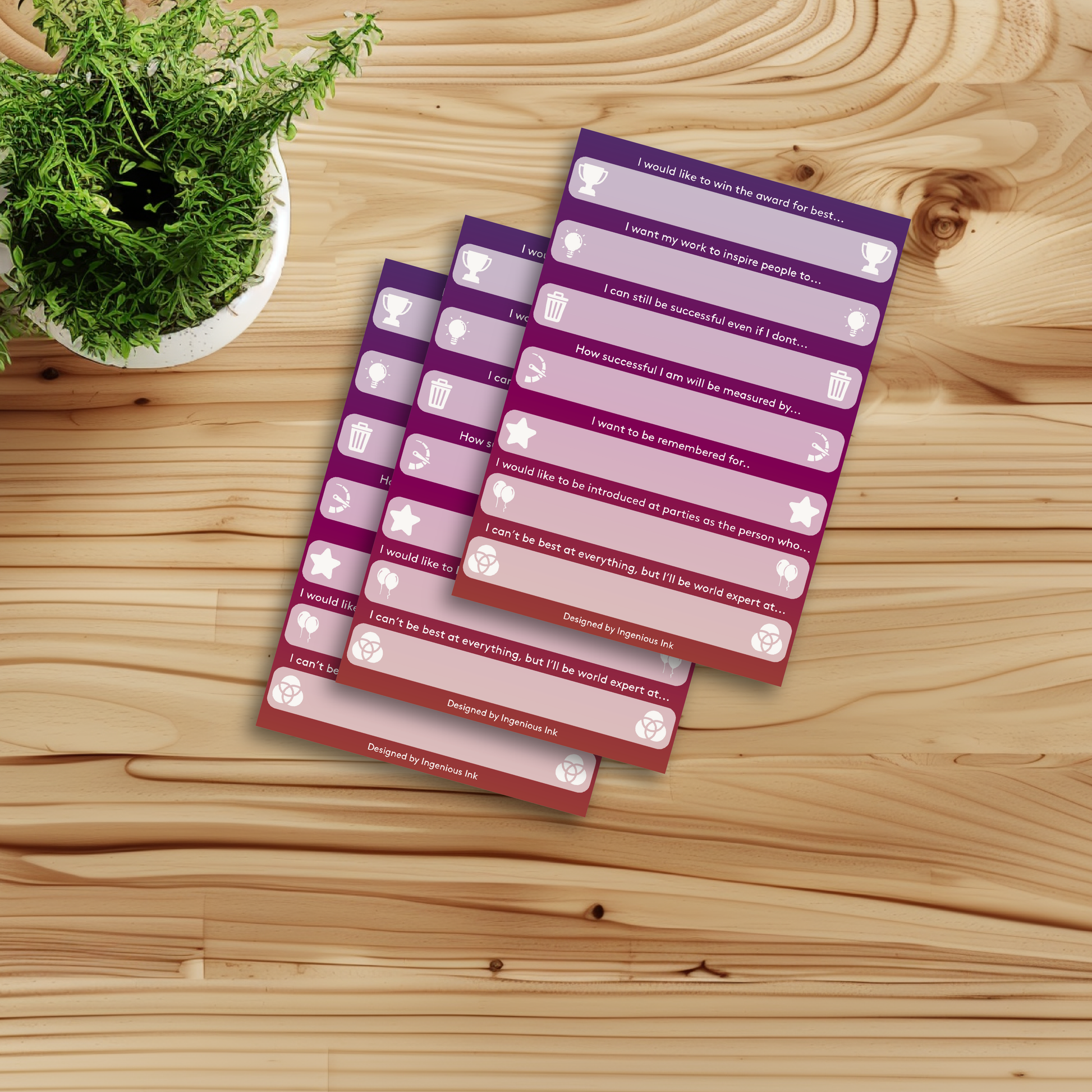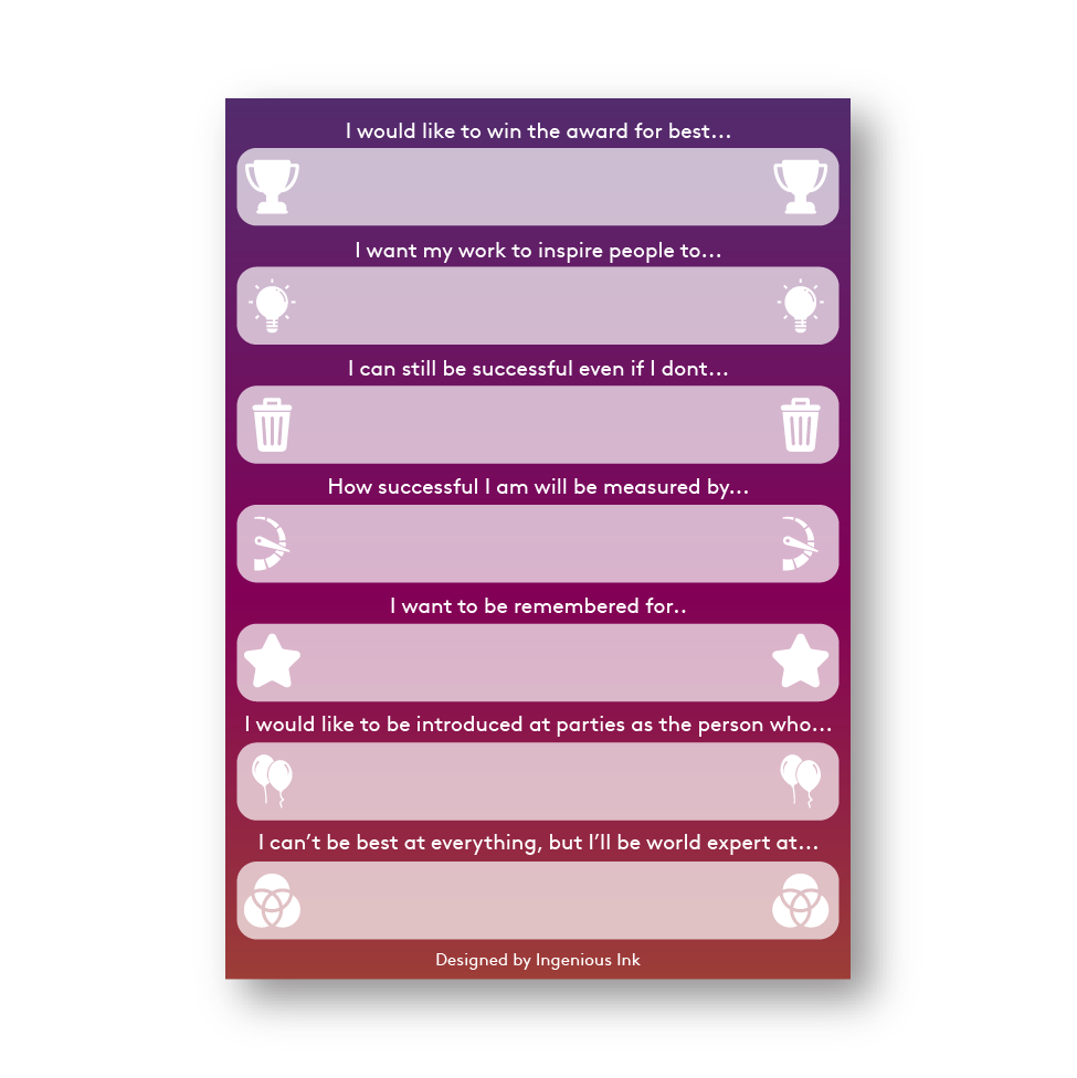 Many other people we know use motivation boards for similar purposes. We know that these work for some people (one friend in sales swears by his collection of sports car photographs). They never really worked for us, but what did was ideas around how other people would react to your successes. So we came up with some quickfire questions that help poke your ideas into shape and get you thinking. Gut reaction answers for these are just as good as considered ones, so don’t feel obliged to think too deeply.