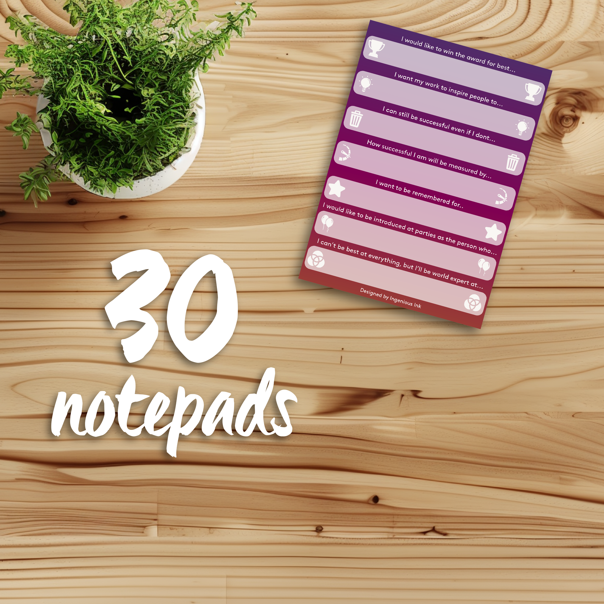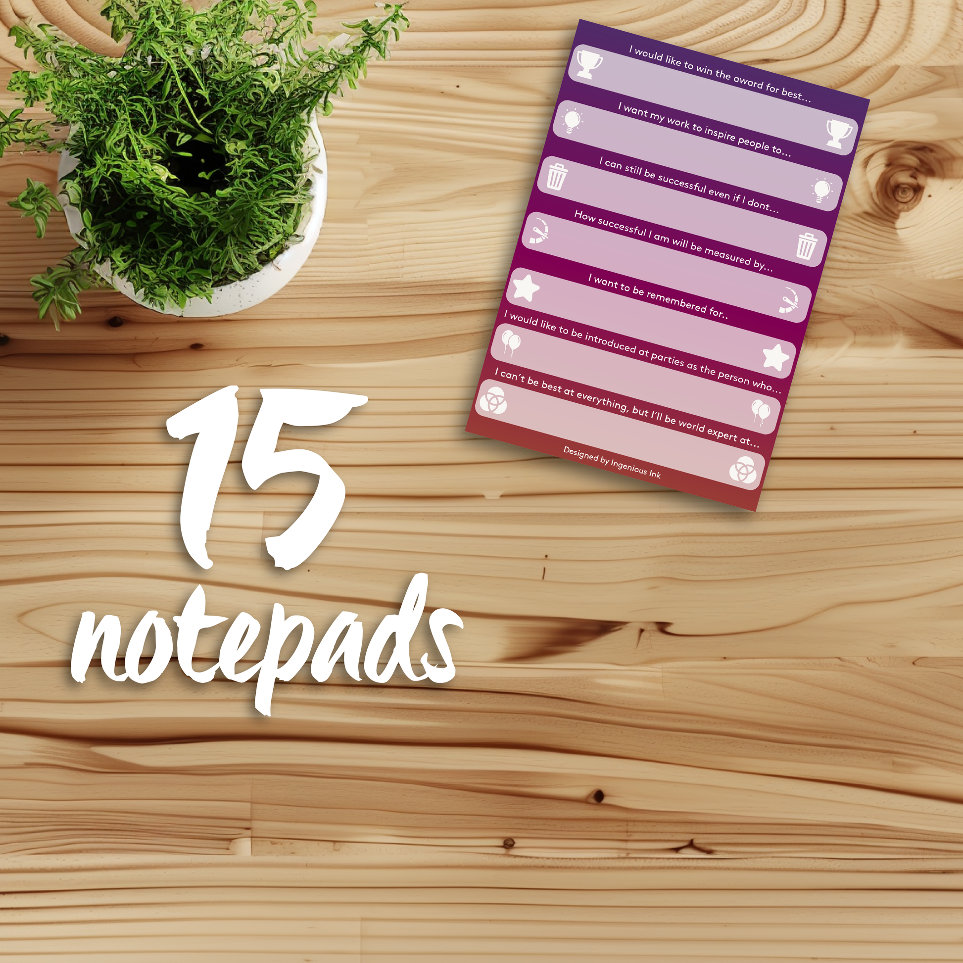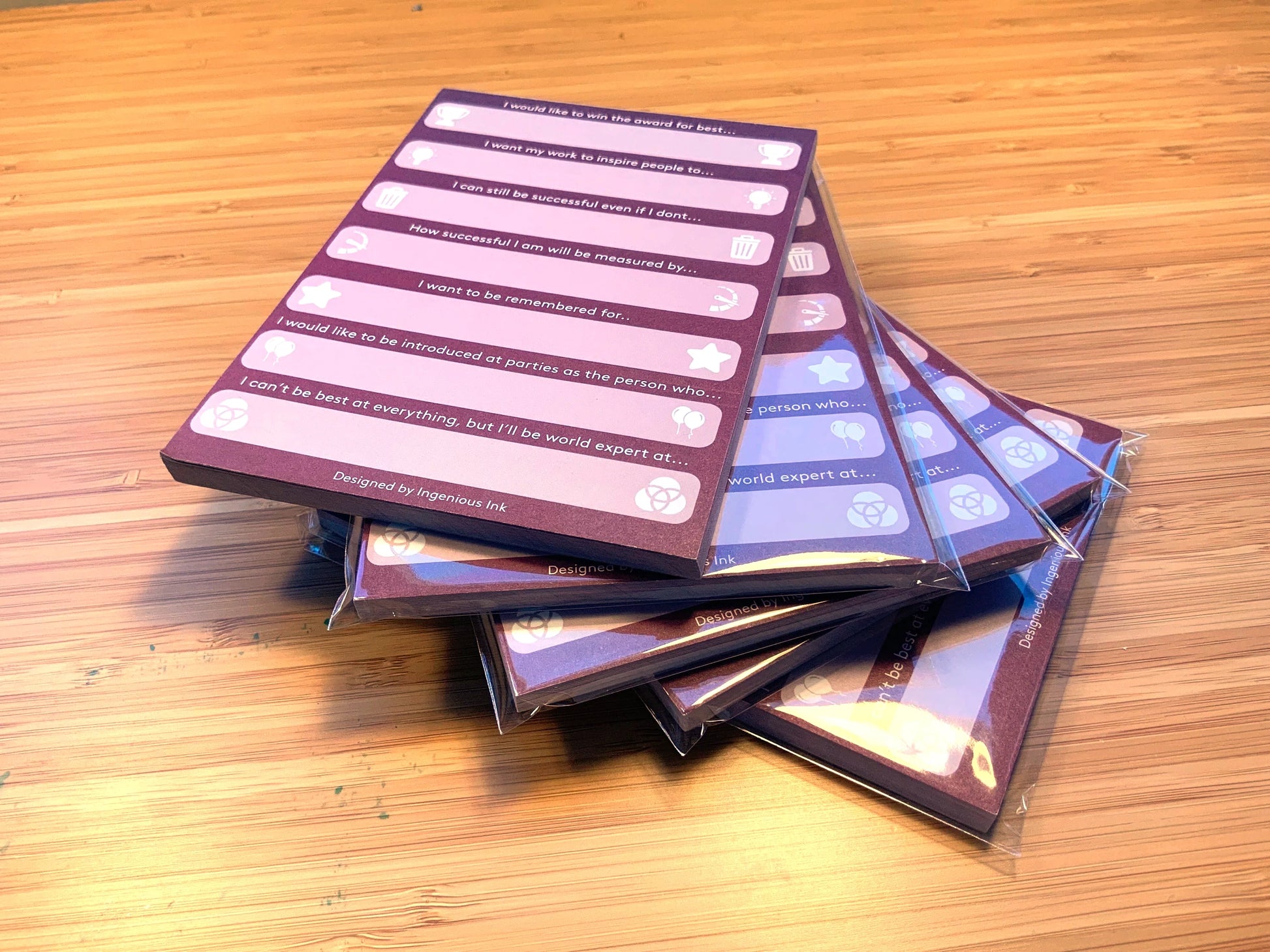 '- A6 sized notepads (10.5 x 14.8 cm)
