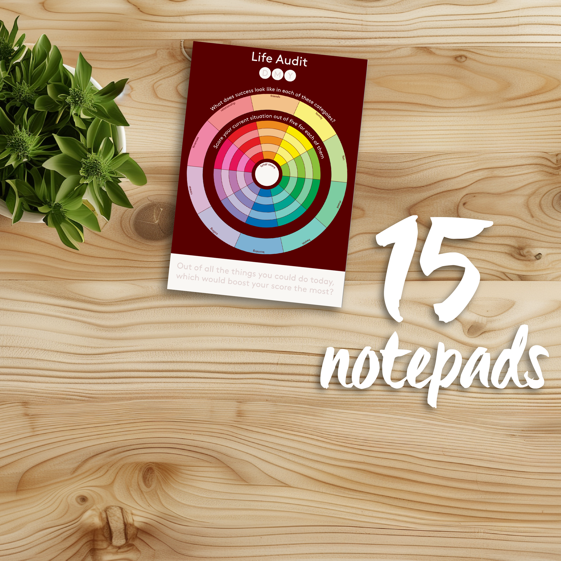 '- A6 sized notepads (10.5 x 14.8 cm)