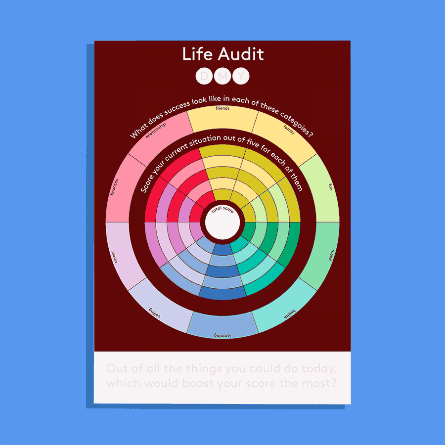 Score your life in ten different categories to pinpoint why and how you could improve.