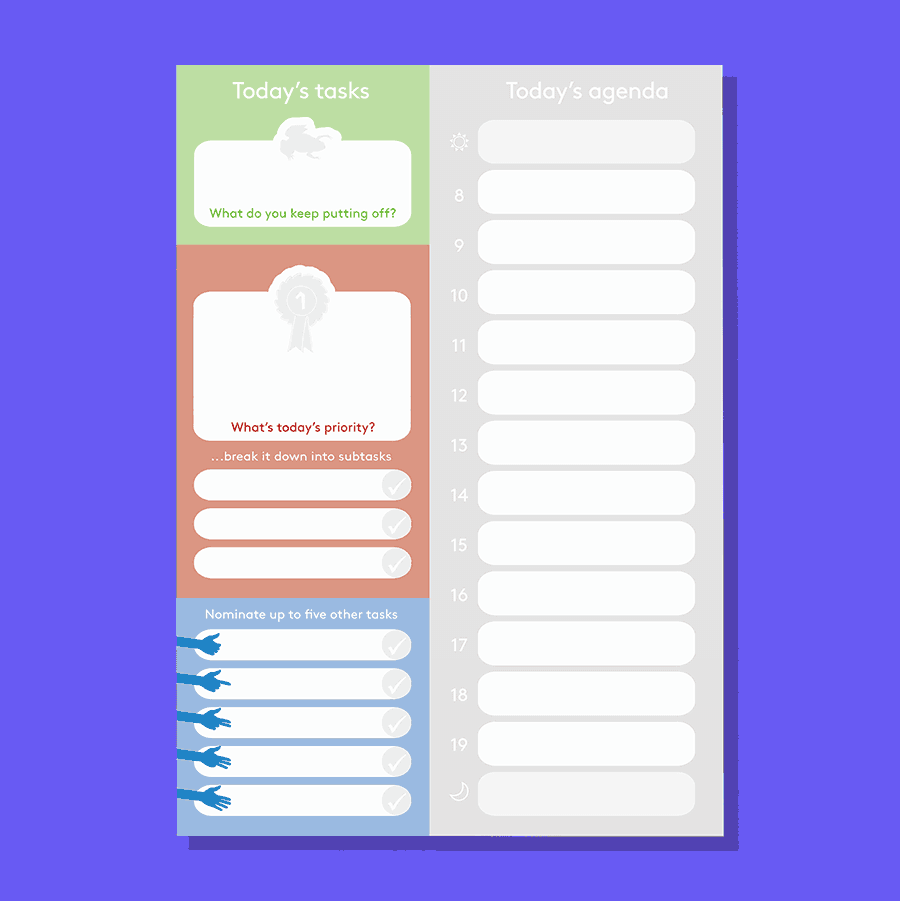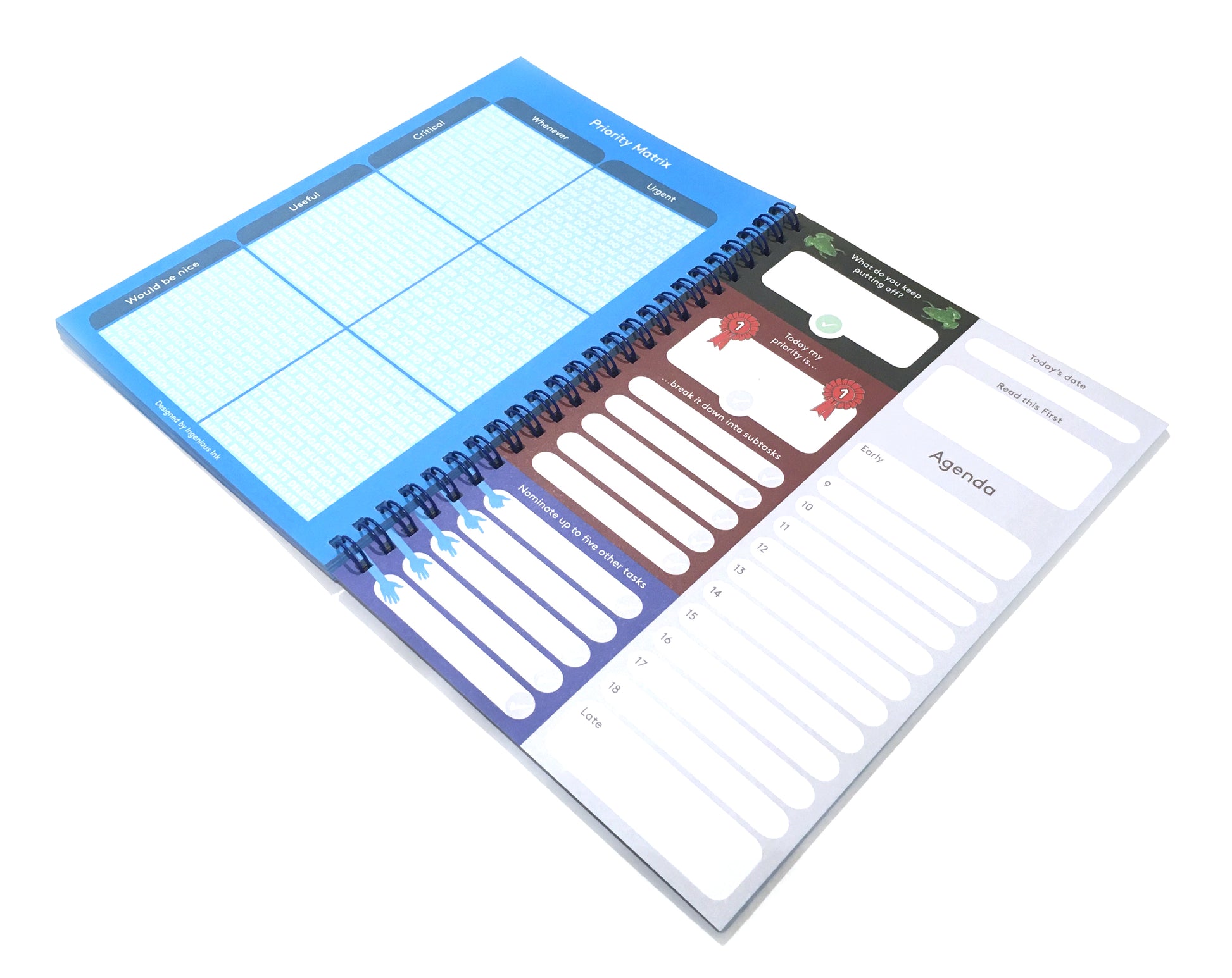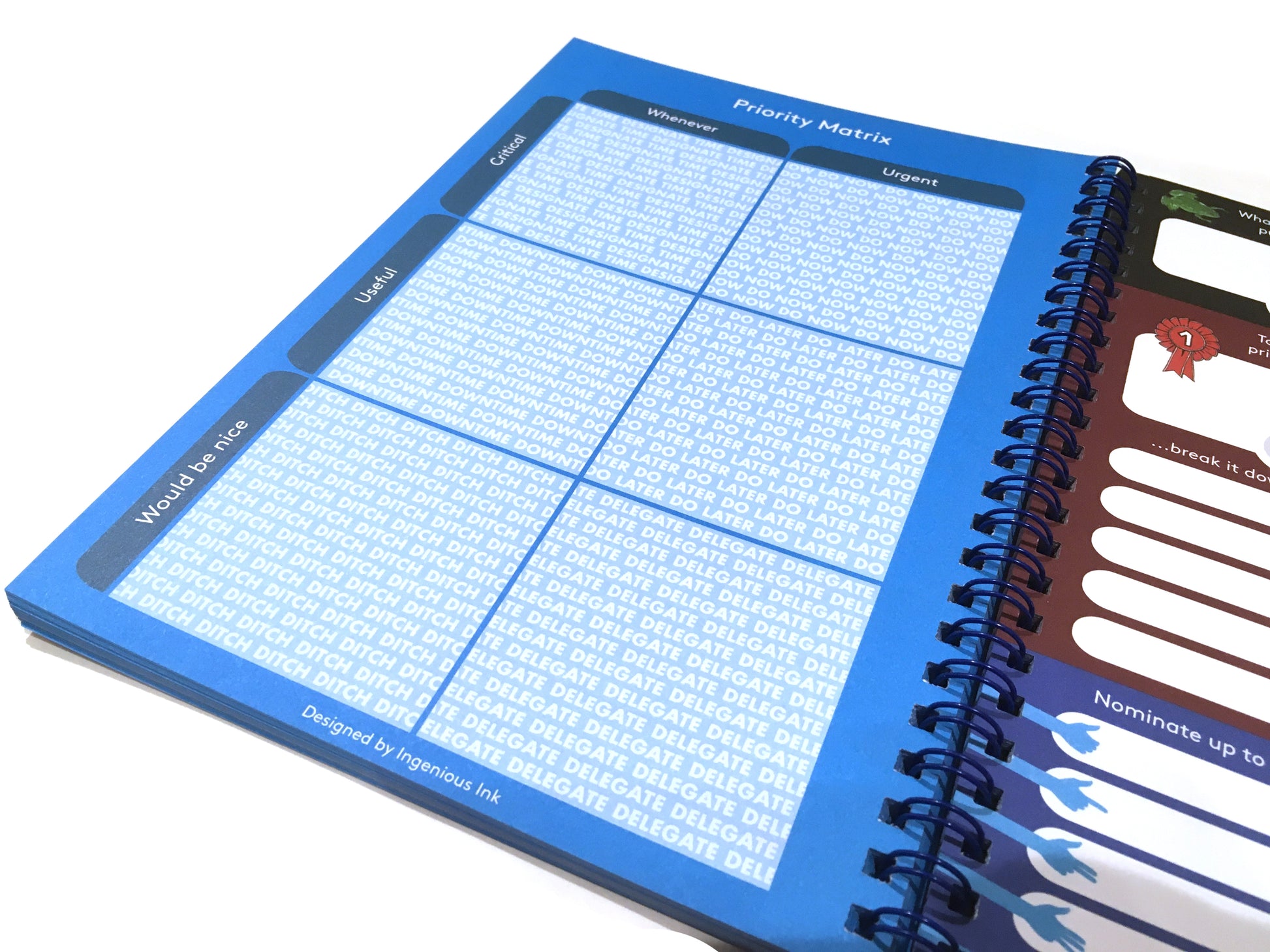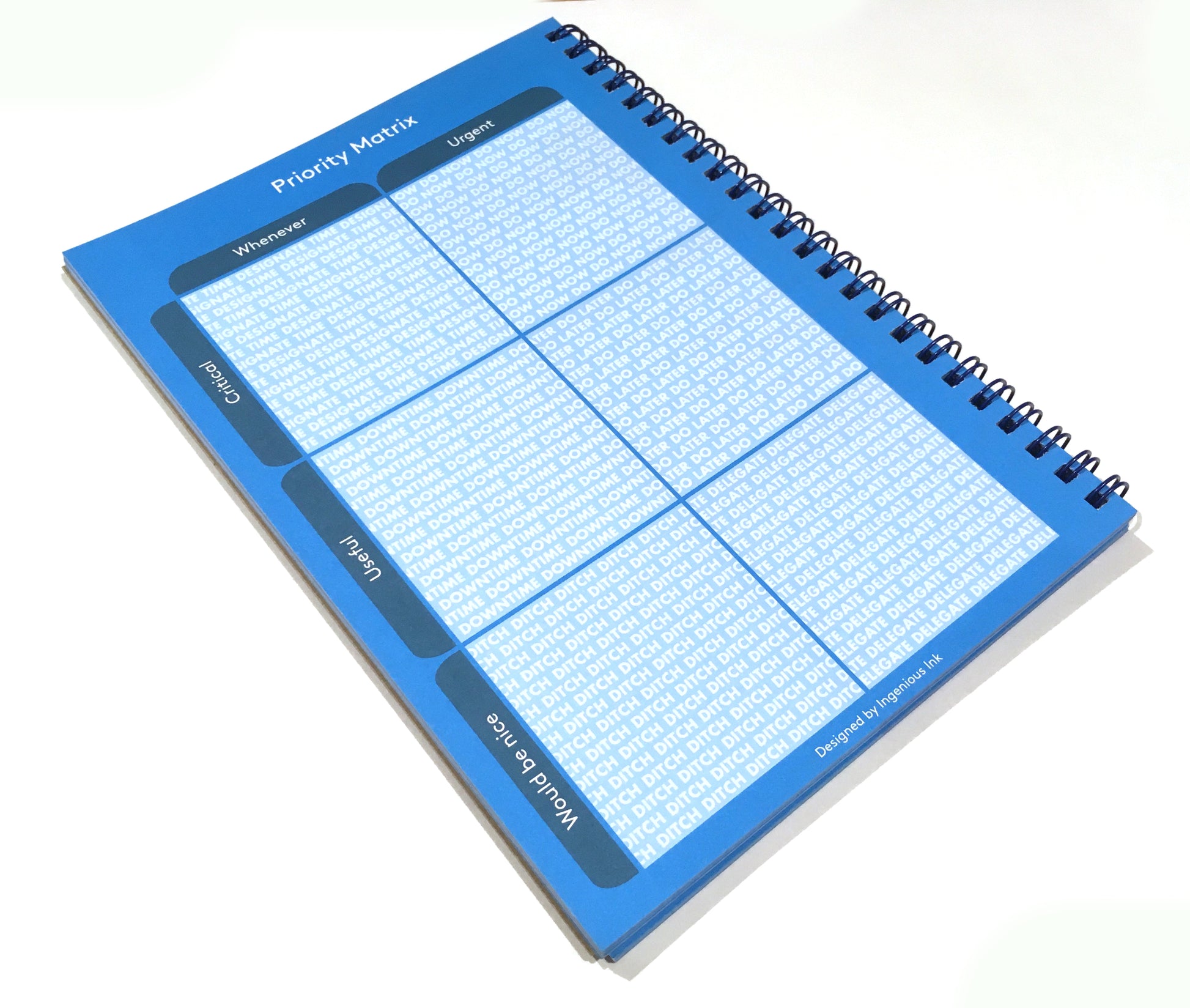 Notebook designed to help you plan your key tasks and schedule for the day. Features Paperthink Maxi on one side and Task Matrix on the other side.