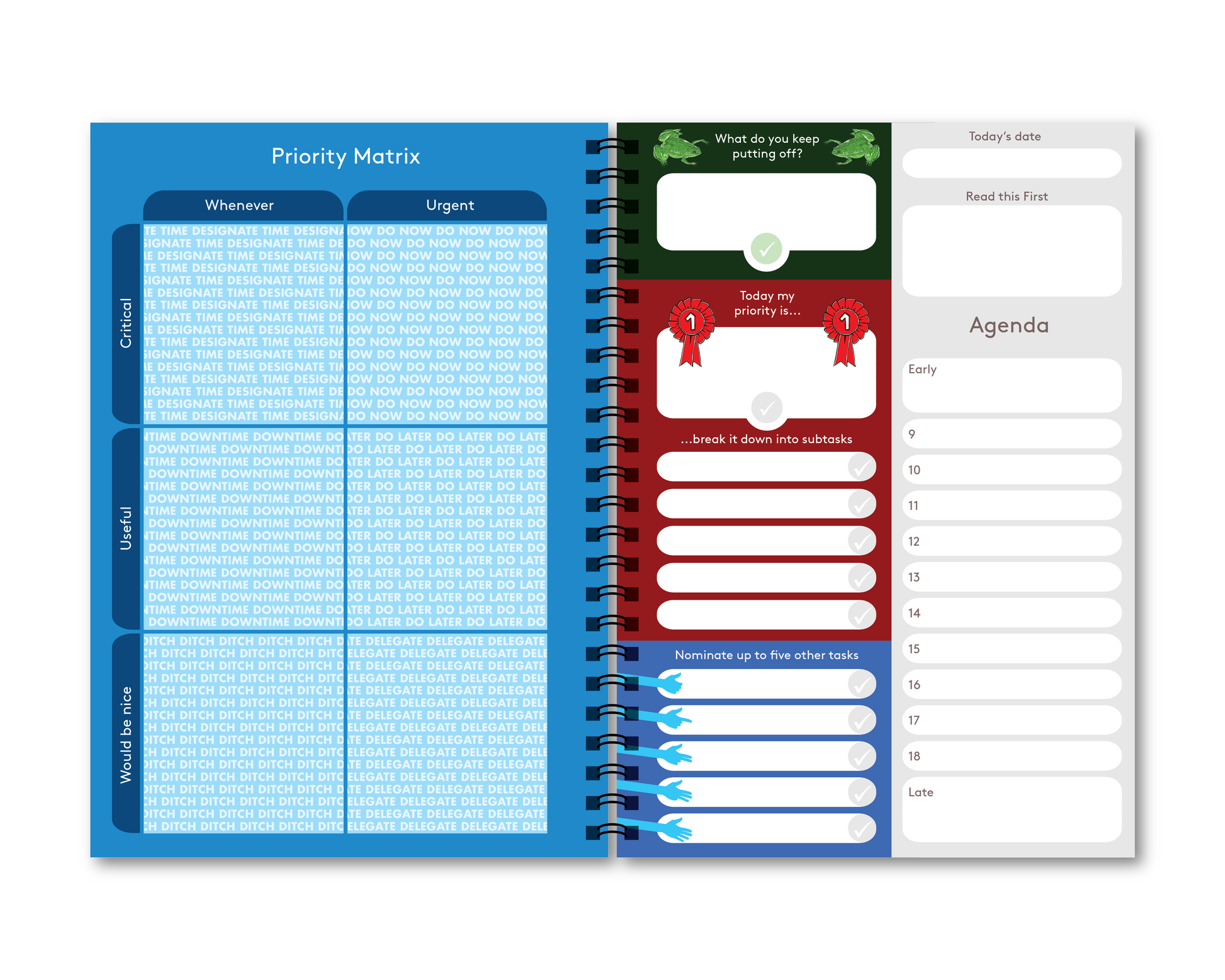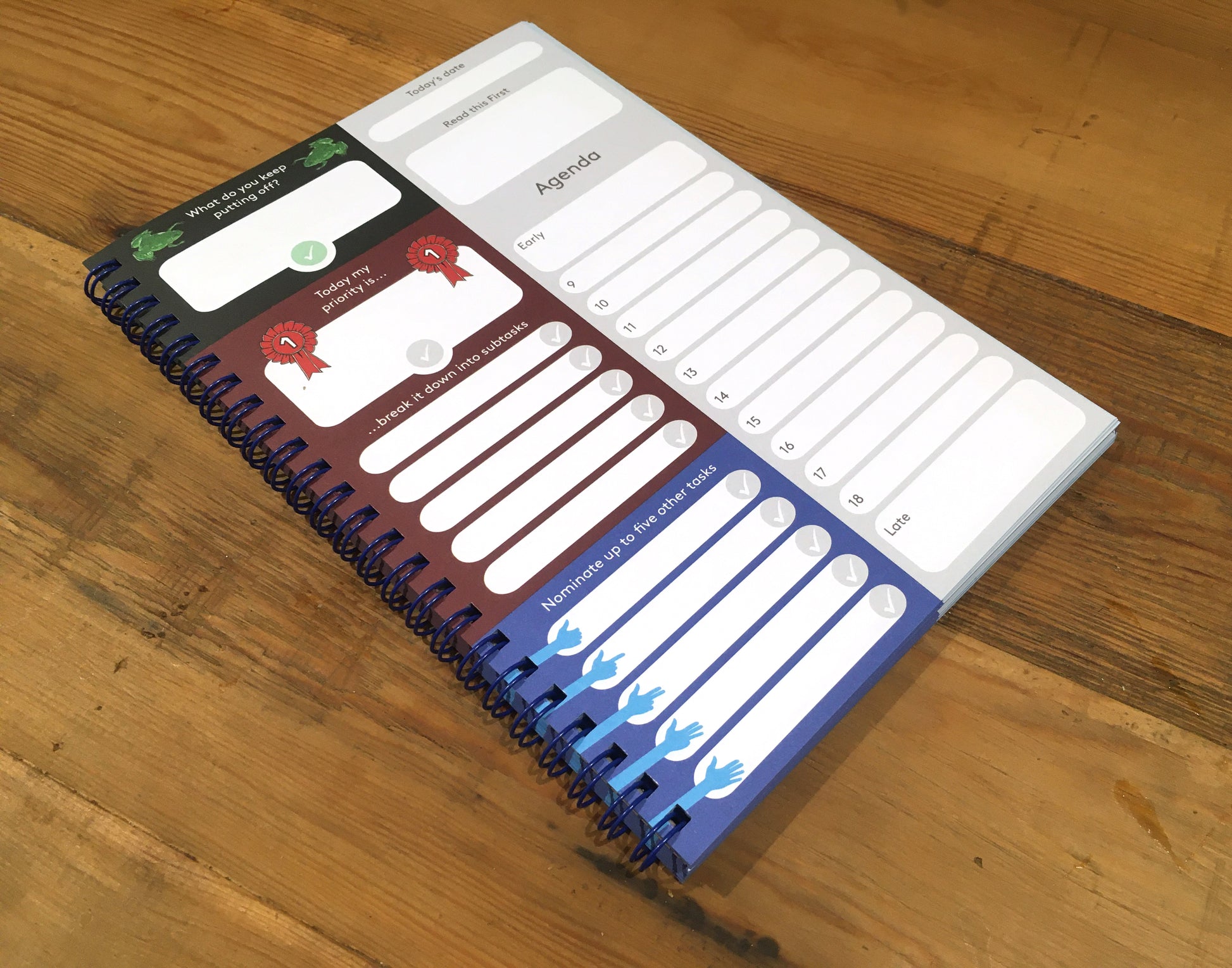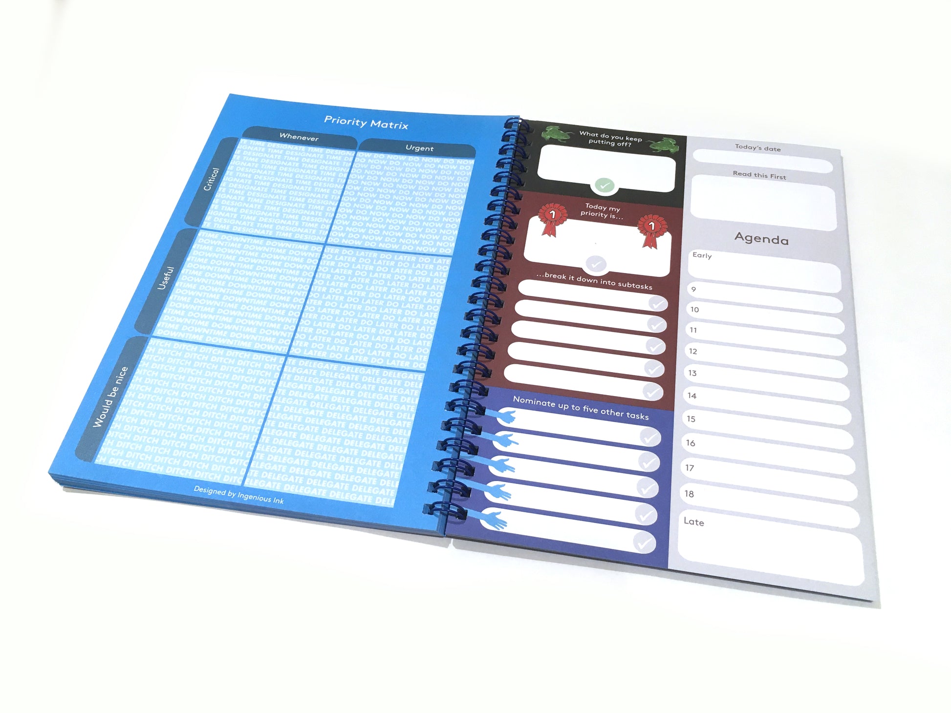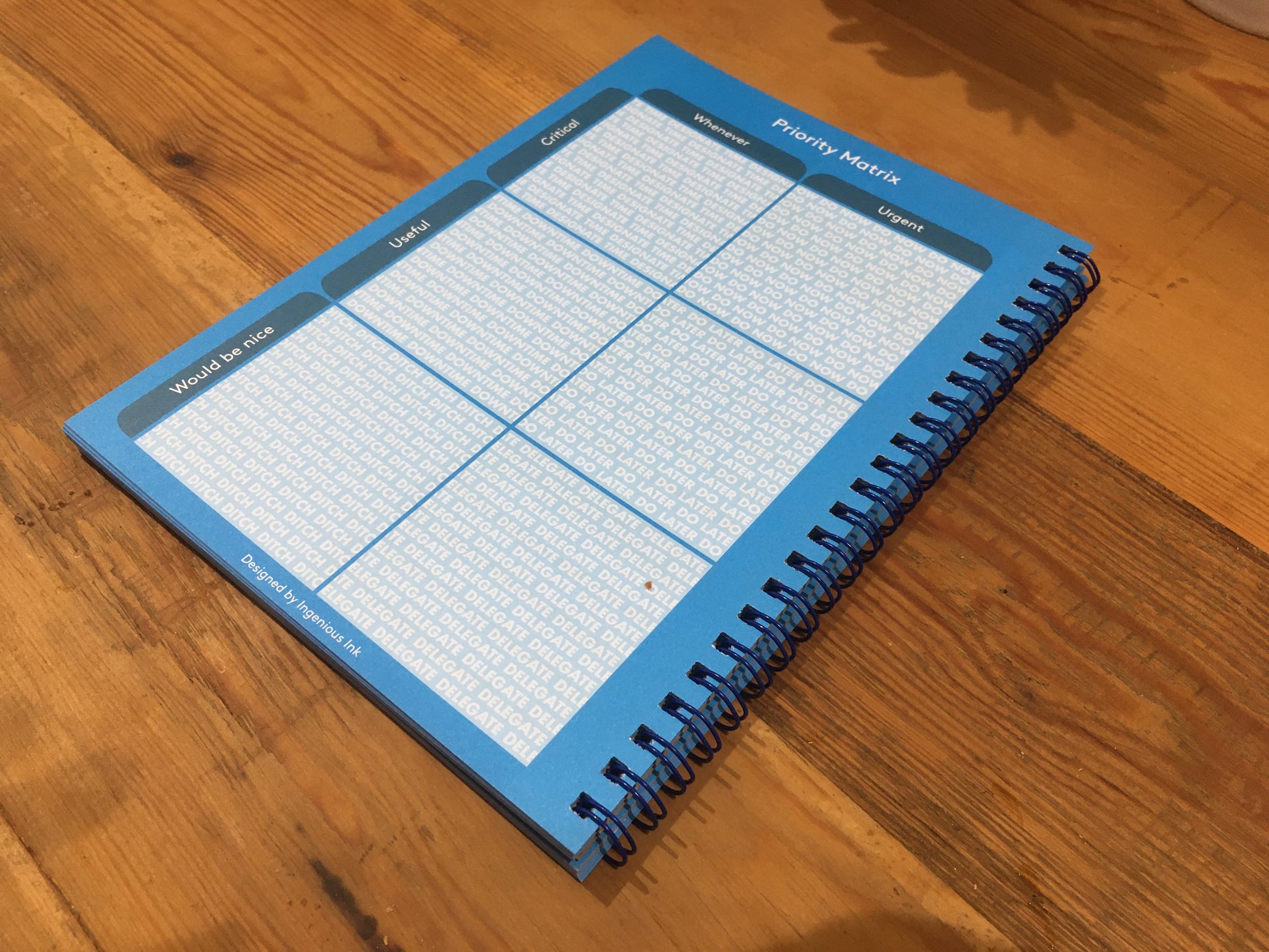 Notebook designed to help you plan your key tasks and schedule for the day. Features Paperthink Maxi on one side and Task Matrix on the other side.