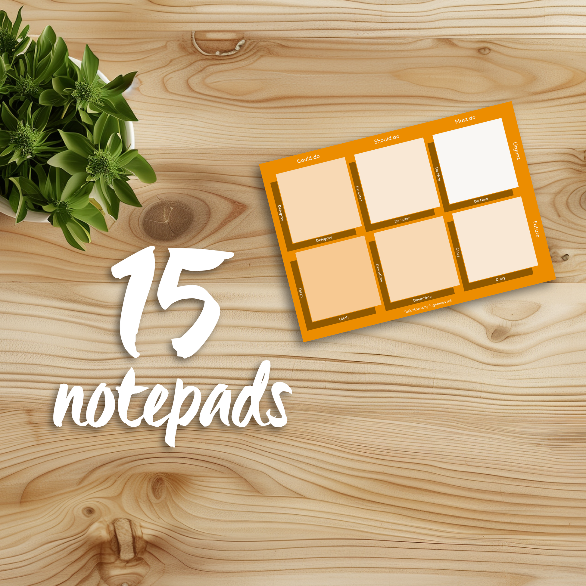 '- A6 sized notepads (10.5 x 14.8 cm)