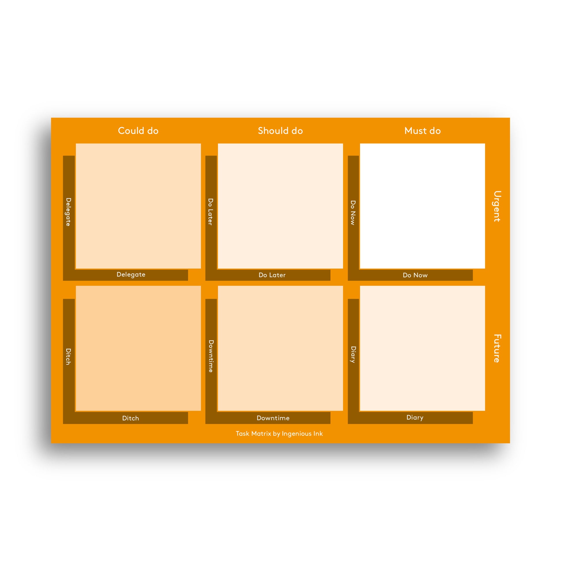 Plot all your to do tasks on our Task matrix based on urgency and importance, then follow the instructions based on which box they ended up in.