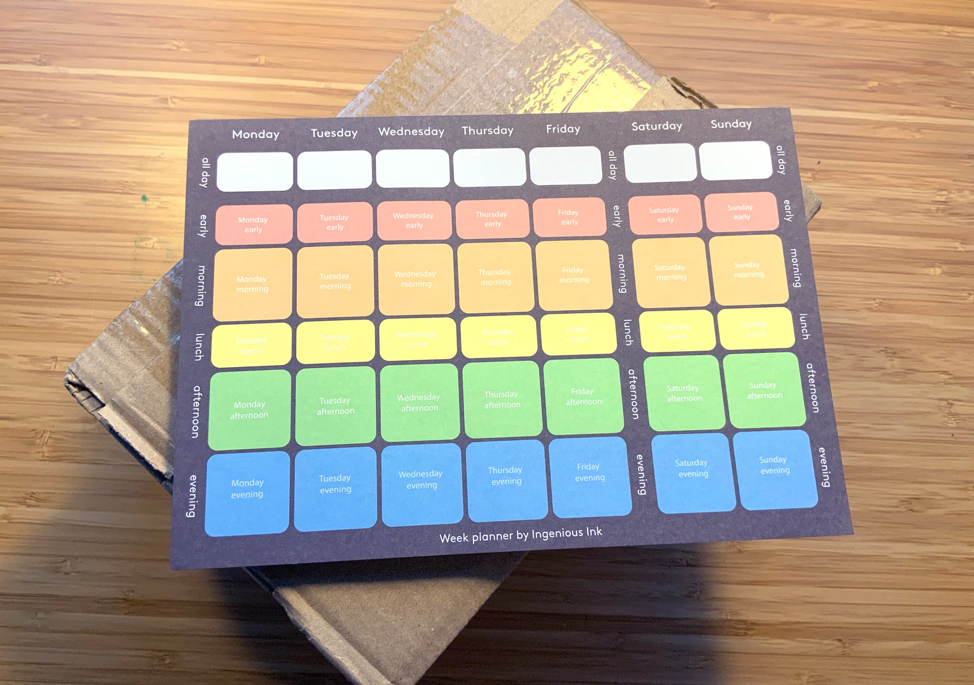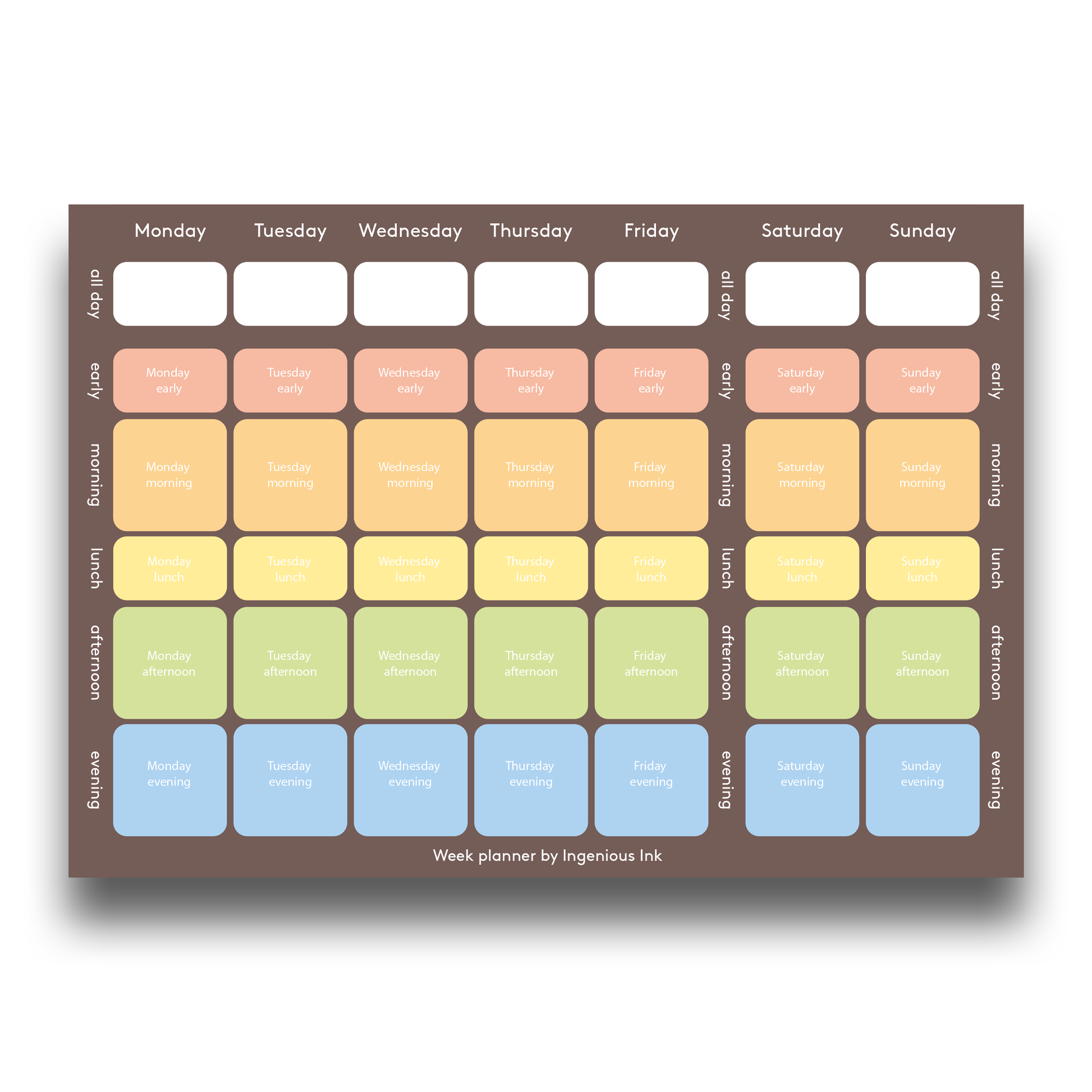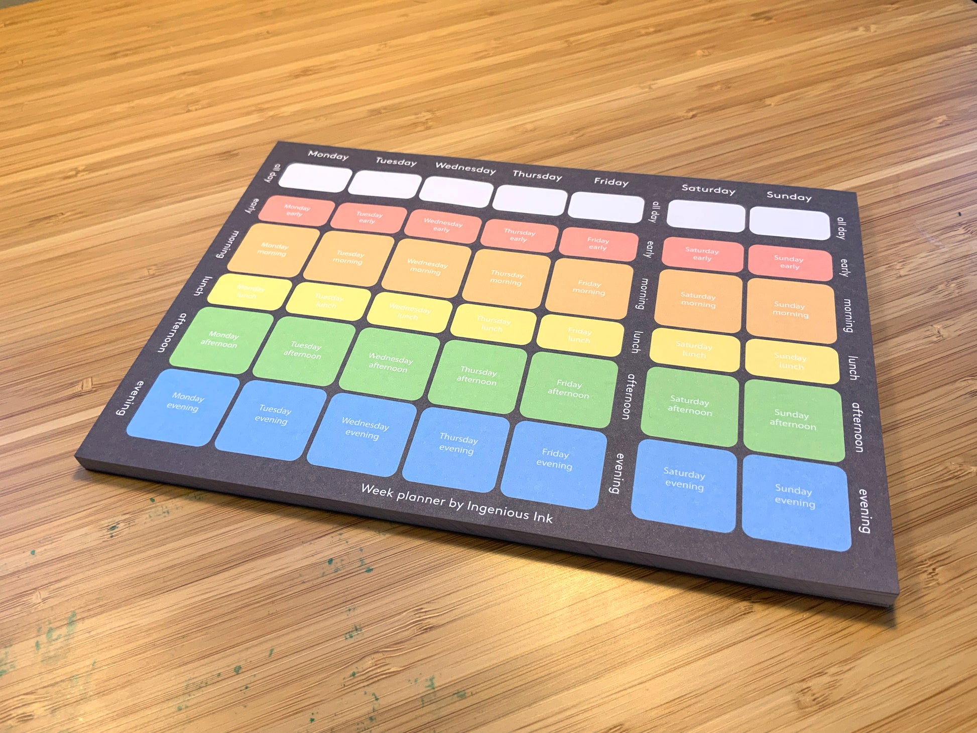 This notepad organises your days into named parts of the day, morning, early, late, afternoon .etc.