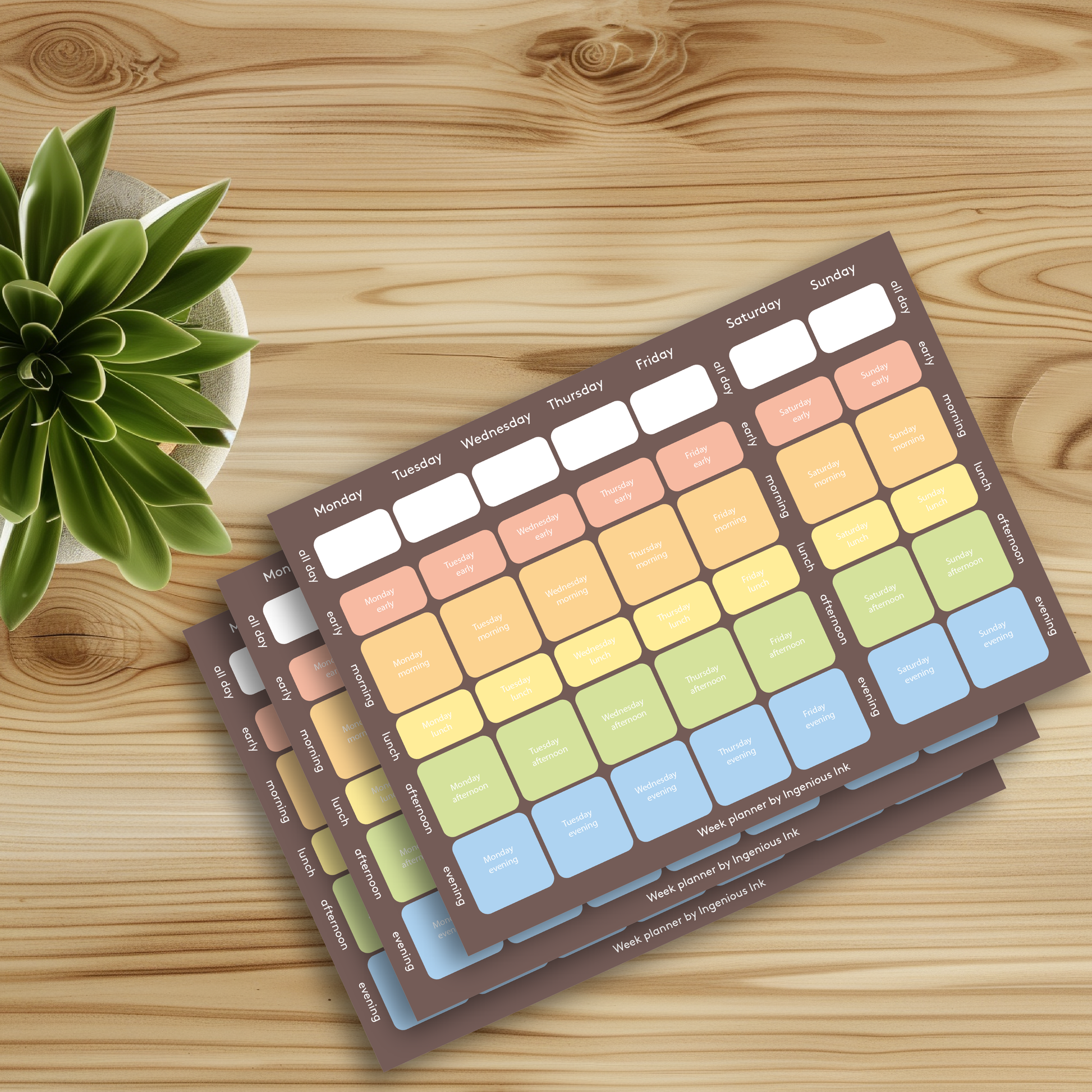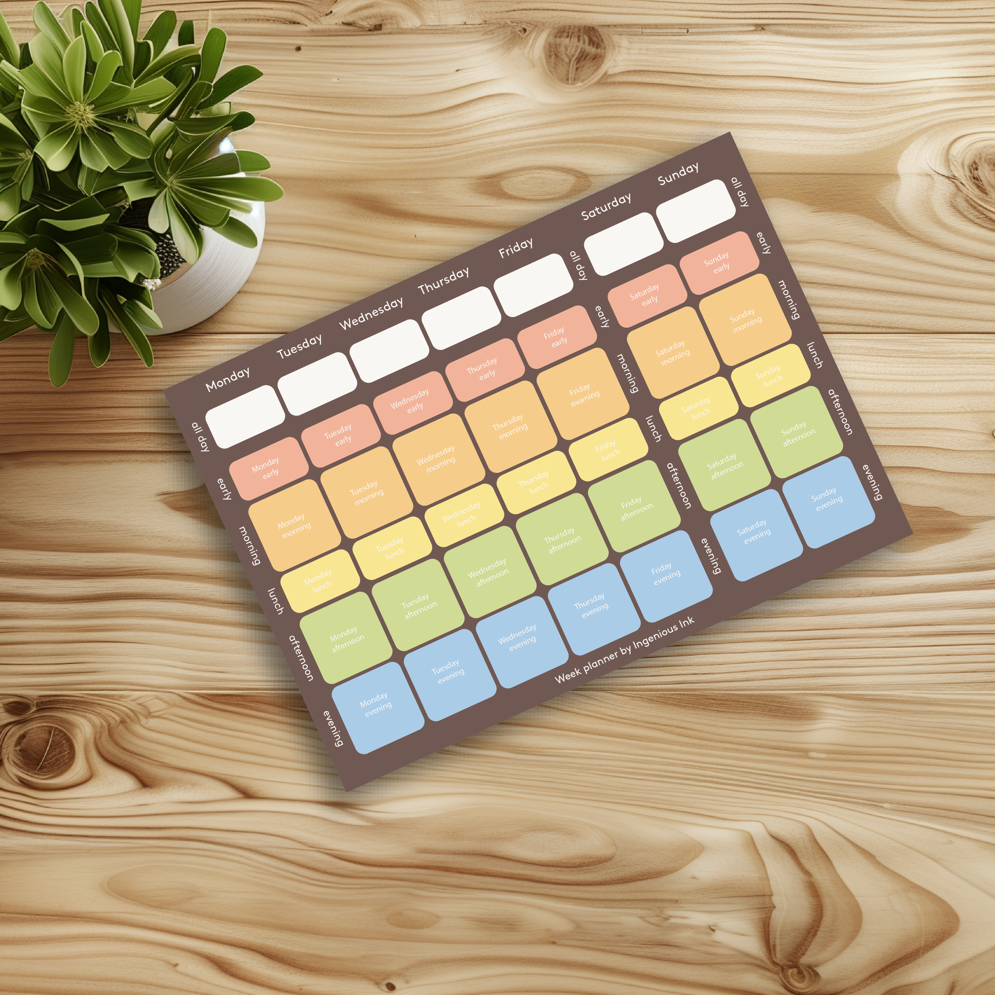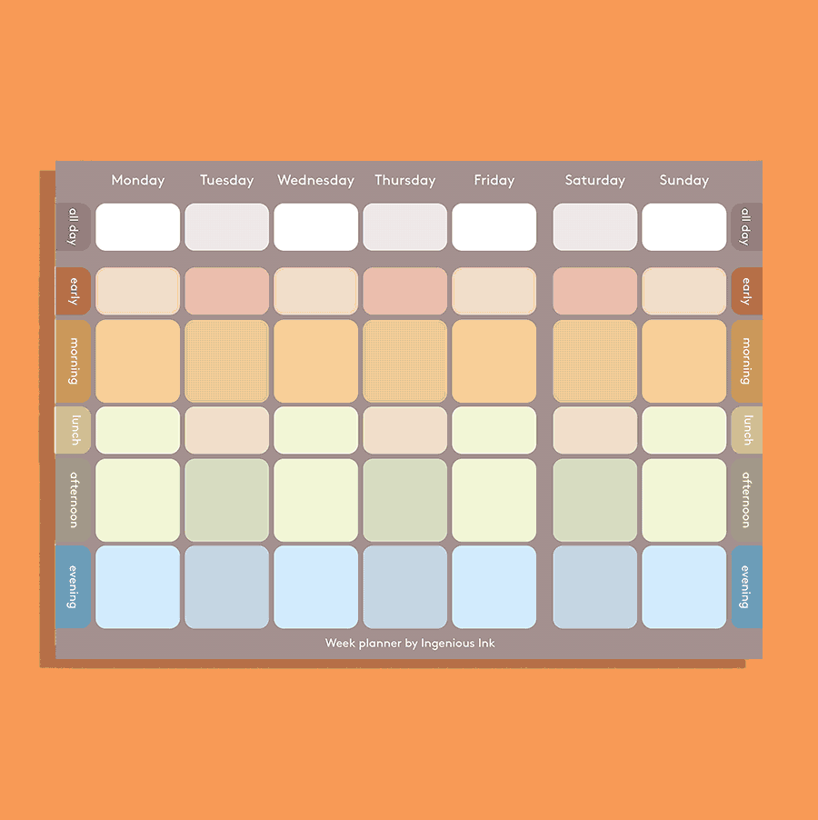 This notepad organises your days into named parts of the day, morning, early, late, afternoon .etc.
